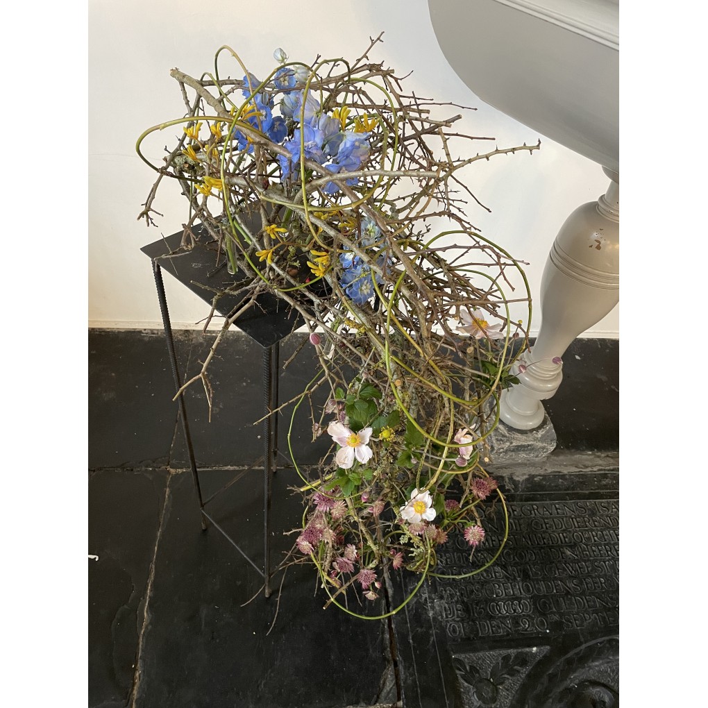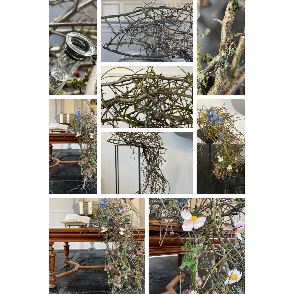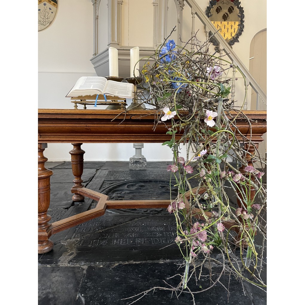 Peter van Asselt, bloemstylist verbonden aan de Abdij van Egmond, maakte een liturgisch arrangement bij het thema van de gebedsweek: Ja, ik geloof! aan de hand van Johannes 11:17-27.